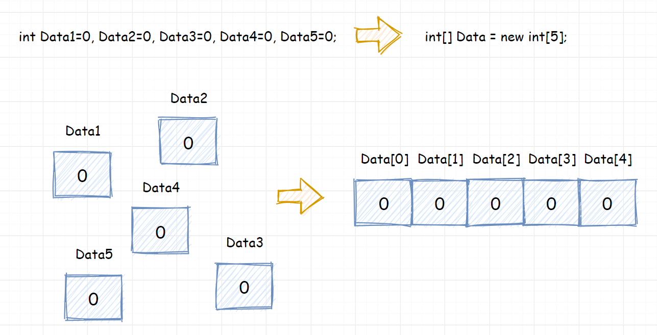 동일한 타입의 변수를 각각 선언하게 될 경우 변수명을 각각 지정해주어야 하기 때문에 선언해야할 변수가 많아질수록 복잡해질 수 있습니다.