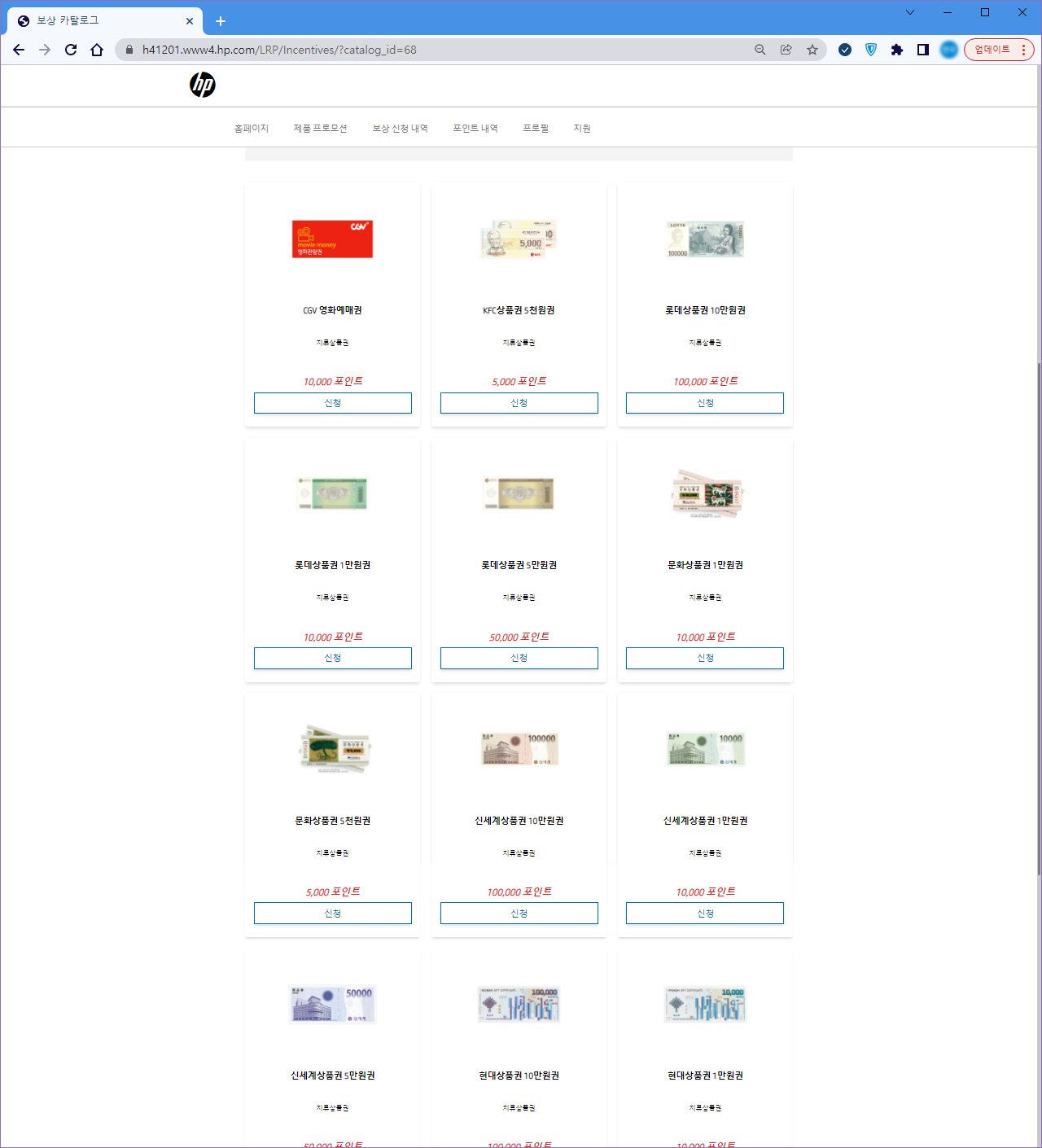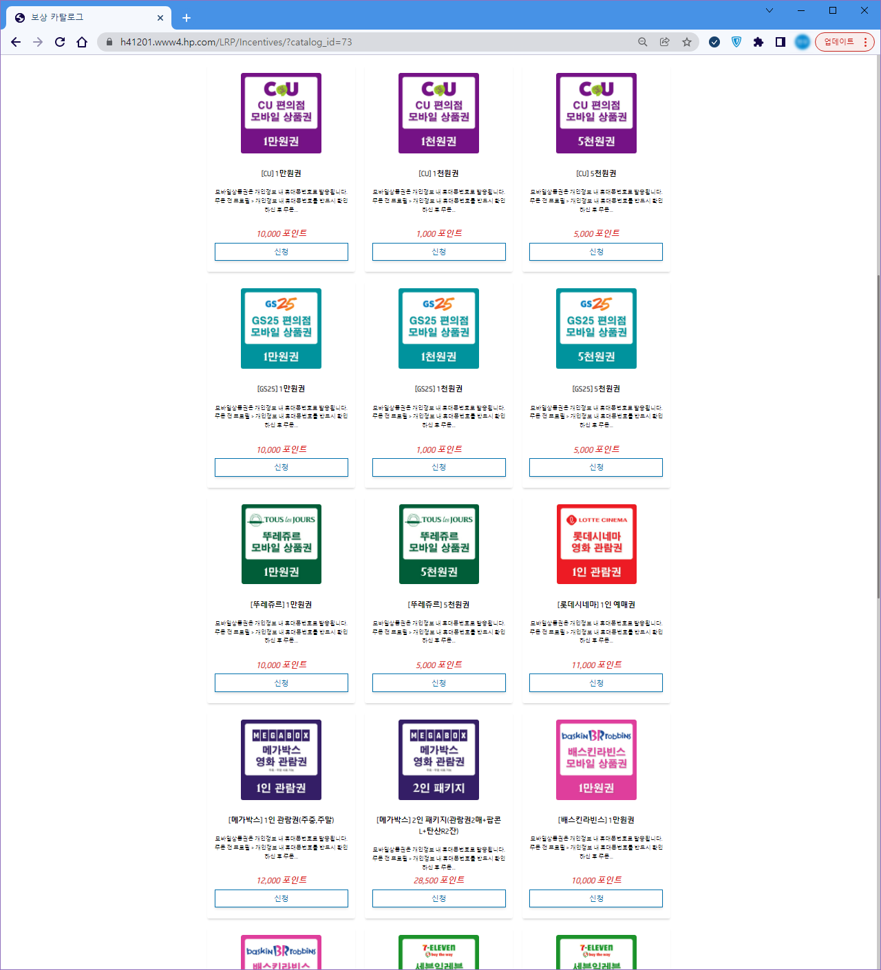이 포인트는 모아서 다양한 것들을 구매할 수 있습니다. 지류상품권이나 일반 상품도 있고 모바일 상품권도 있습니다.
