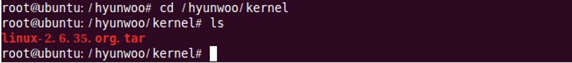 위에서 삼바를 이용해 옮겨준 kernel 파일도 다음과 같이 압축을 풀어줍니다.
