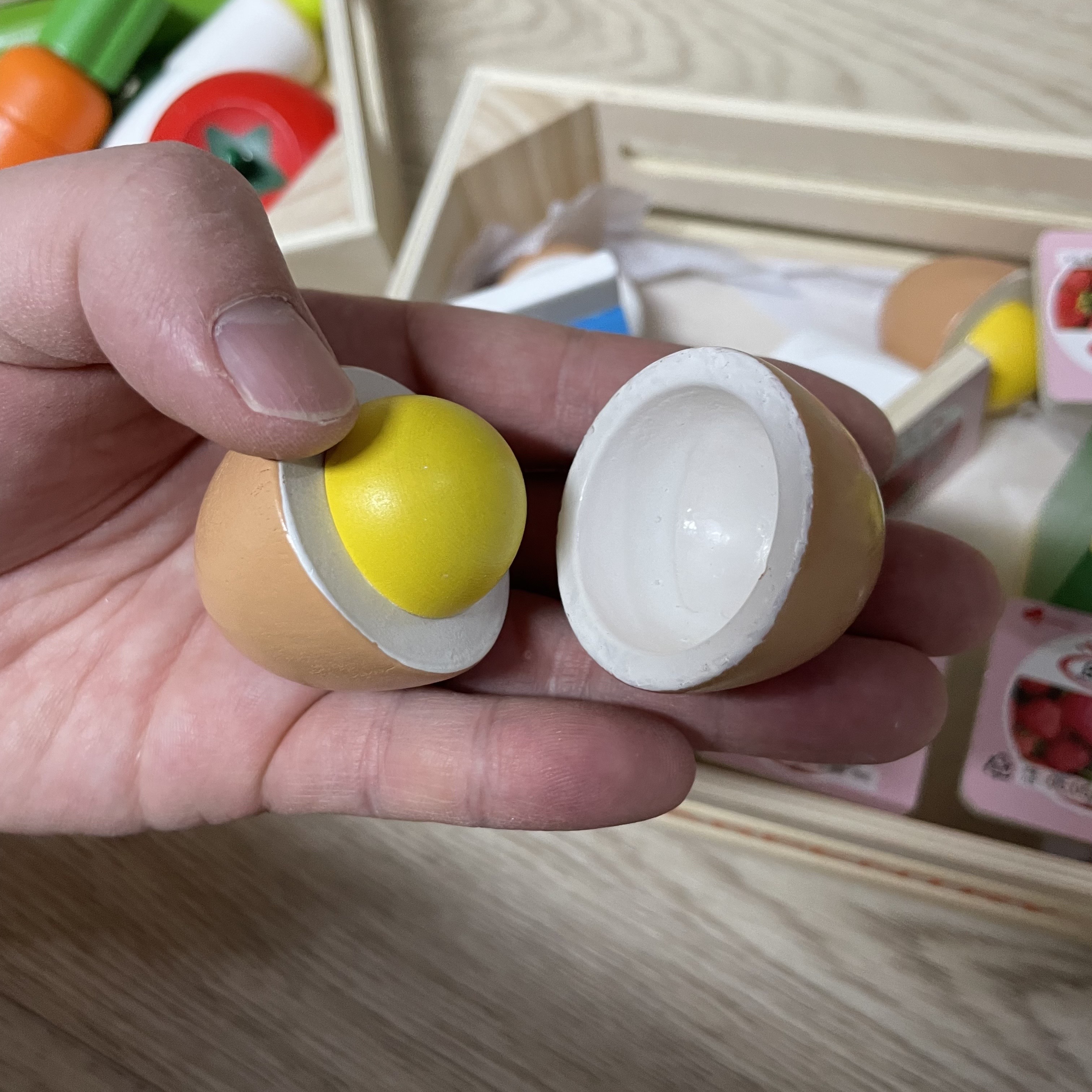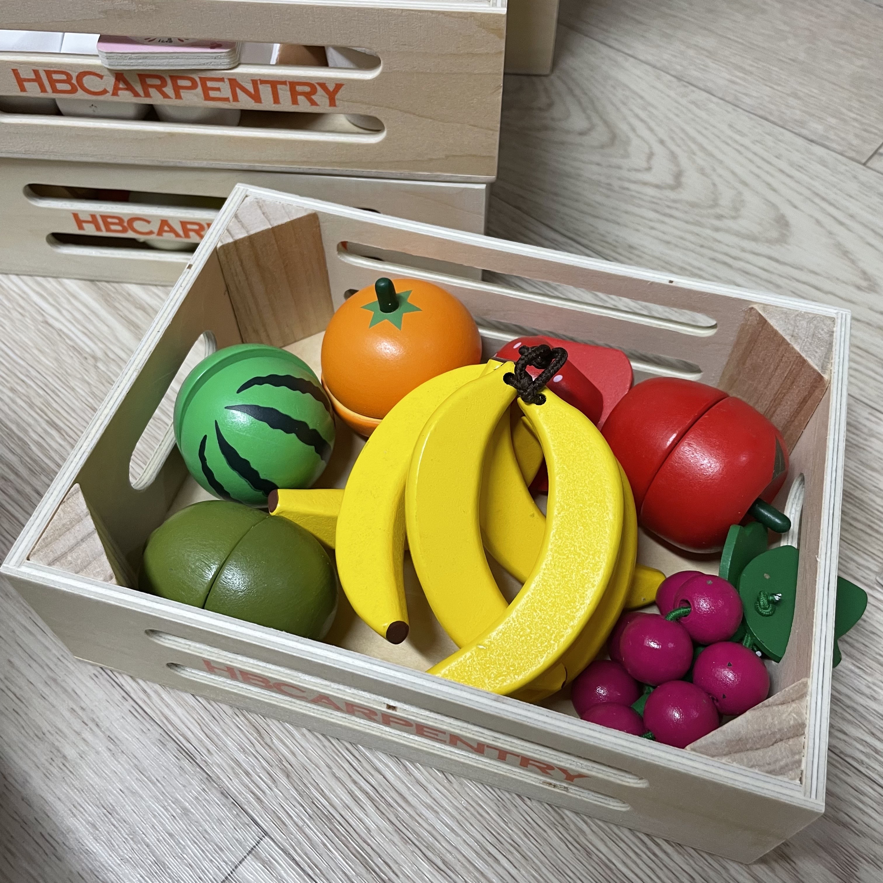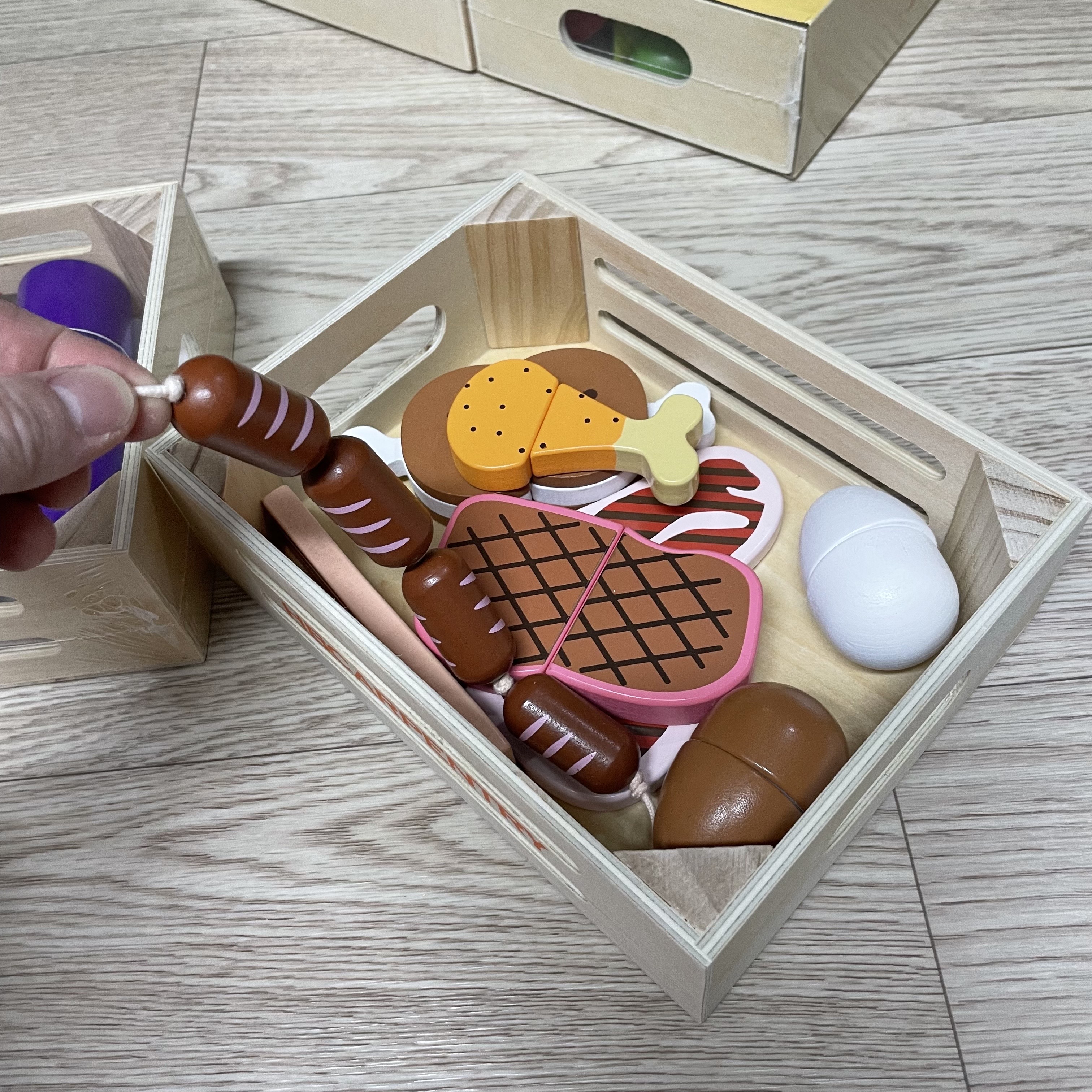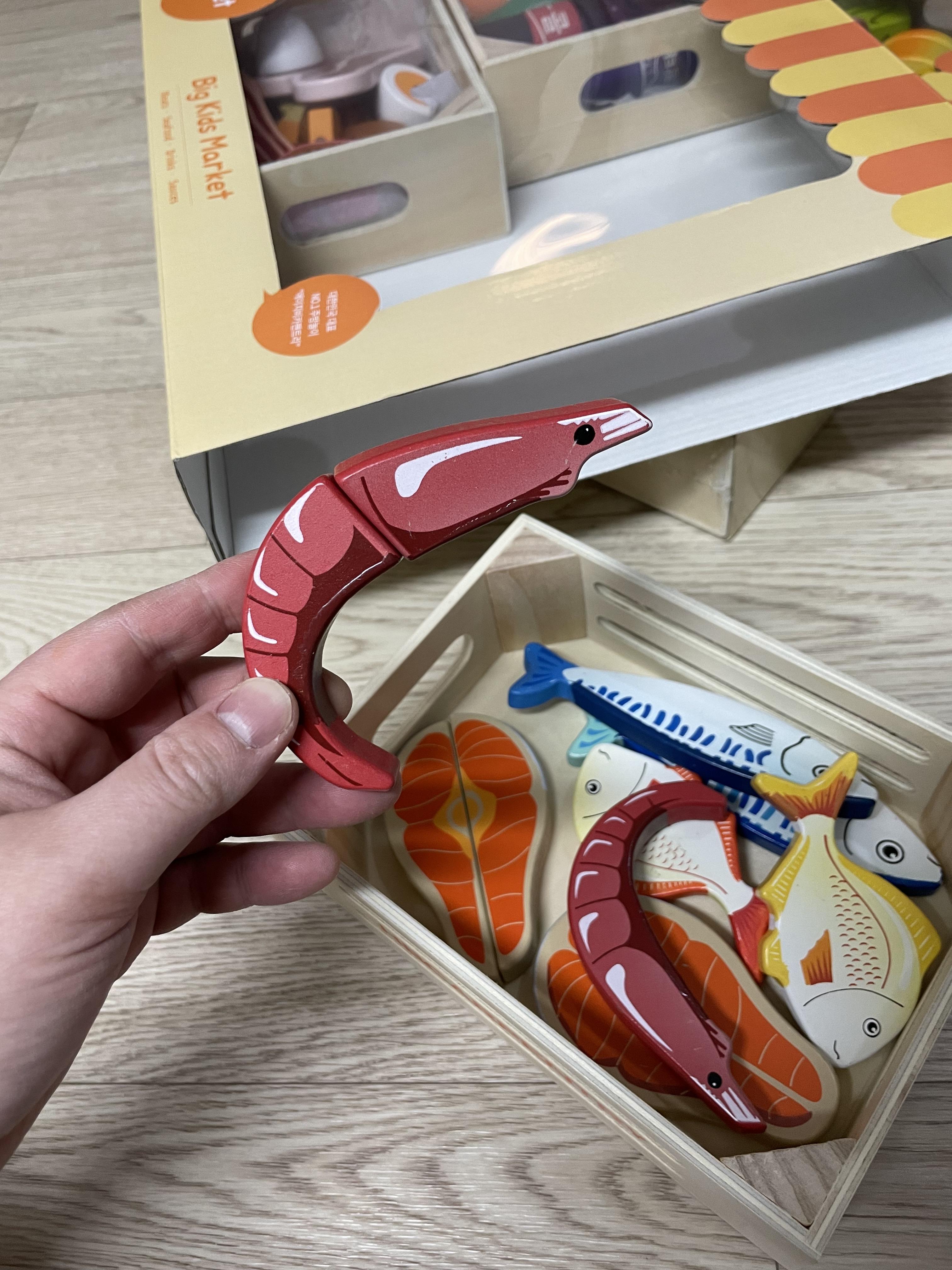 나무 트레이는 마트 놀이에 딱 맞게 들어가서 그대로 넣어서 사용하시면 됩니다.