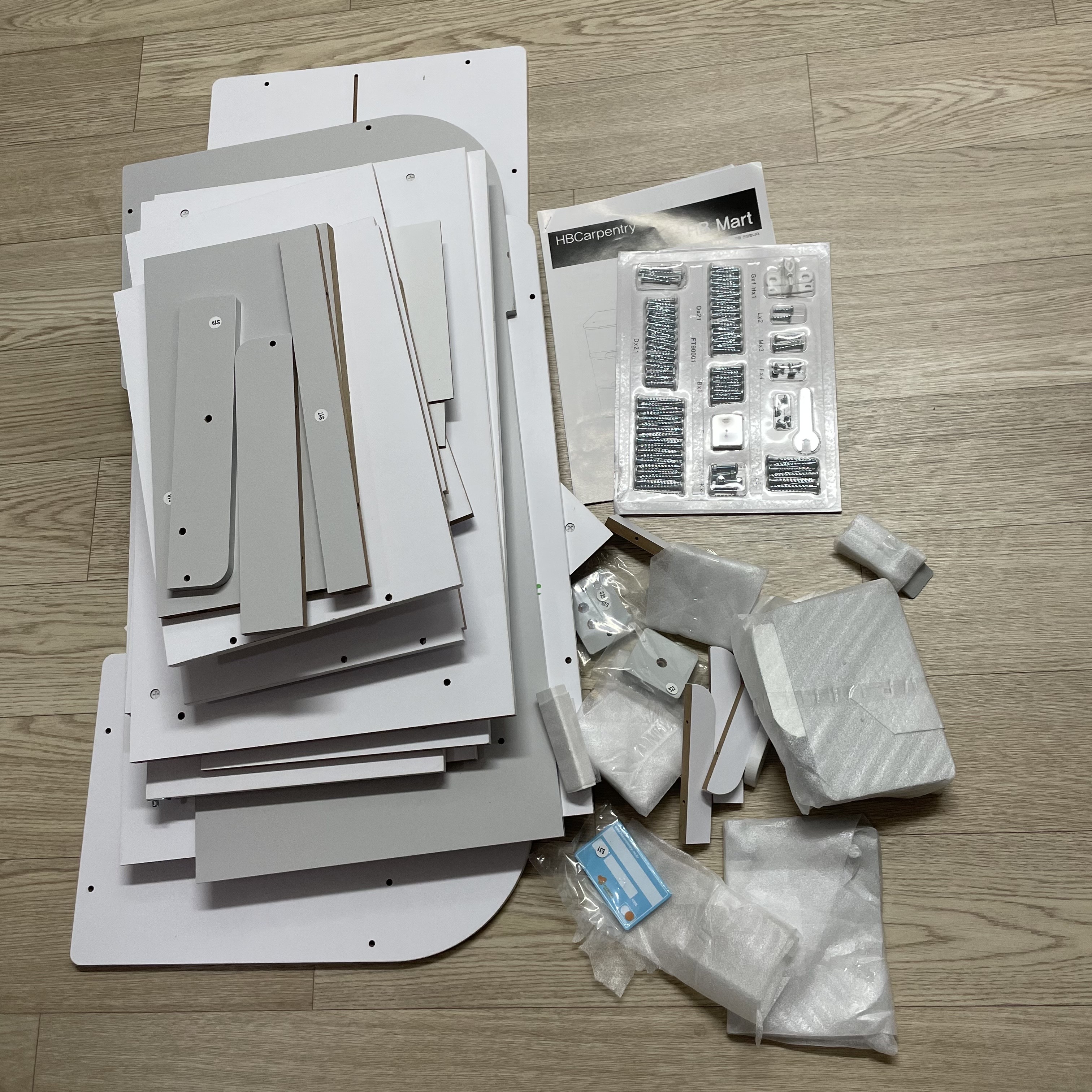 박스를 뜯으면 상판 하판 옆판 등등 나무 판자만 쌓여있습니다.