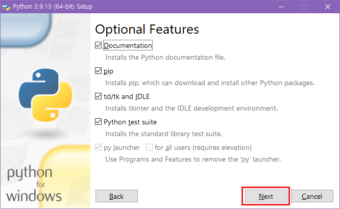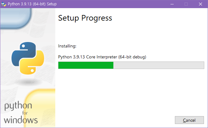 3.9.13 버전에 Downlad windows installer(64-bit)를 선택하여 다운로드 받습니다.