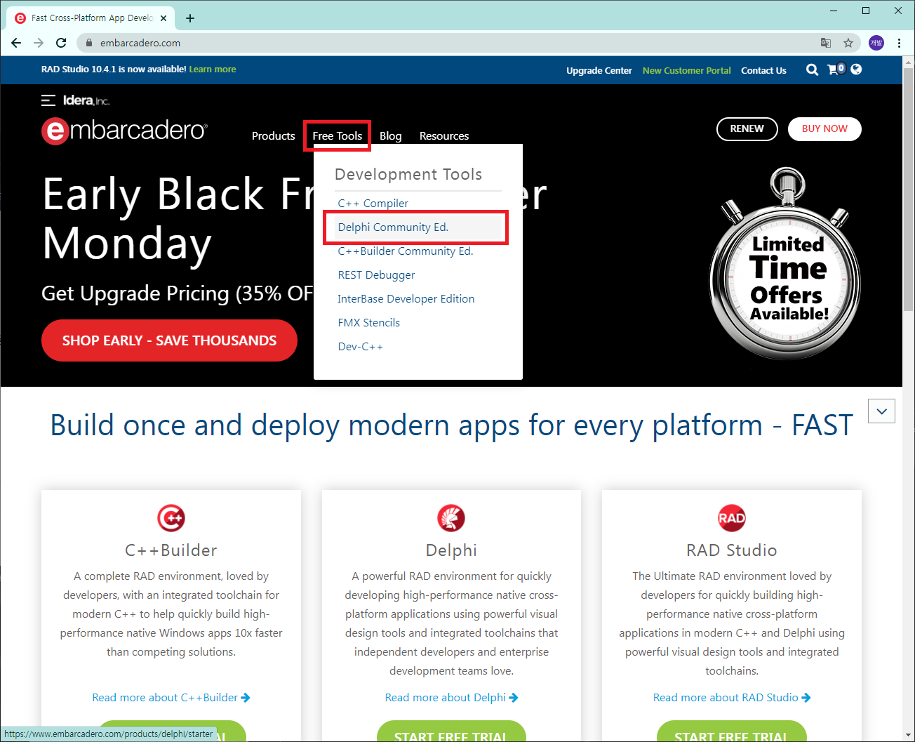 Free Tools의 Delphi Community Ed. 를 선택해줍니다.
