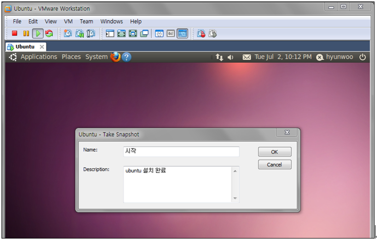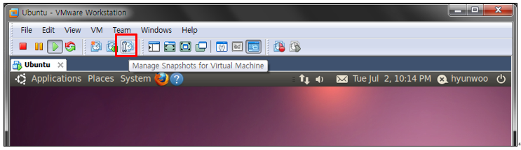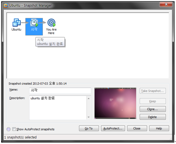 VMware에 Ubuntu를 설치하자 마자 Snapshot을 저장해 보았습니다.