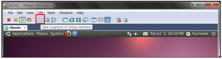 우선 아래의 그림과 같이 Take Snapshot of Virtual Machine 버튼을 눌러줍니다.