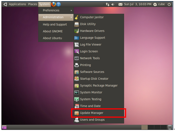 상단 메뉴에서 System - Administration - Update Manager를 선택하여 업데이트 관리 페이지를 열어줍니다.