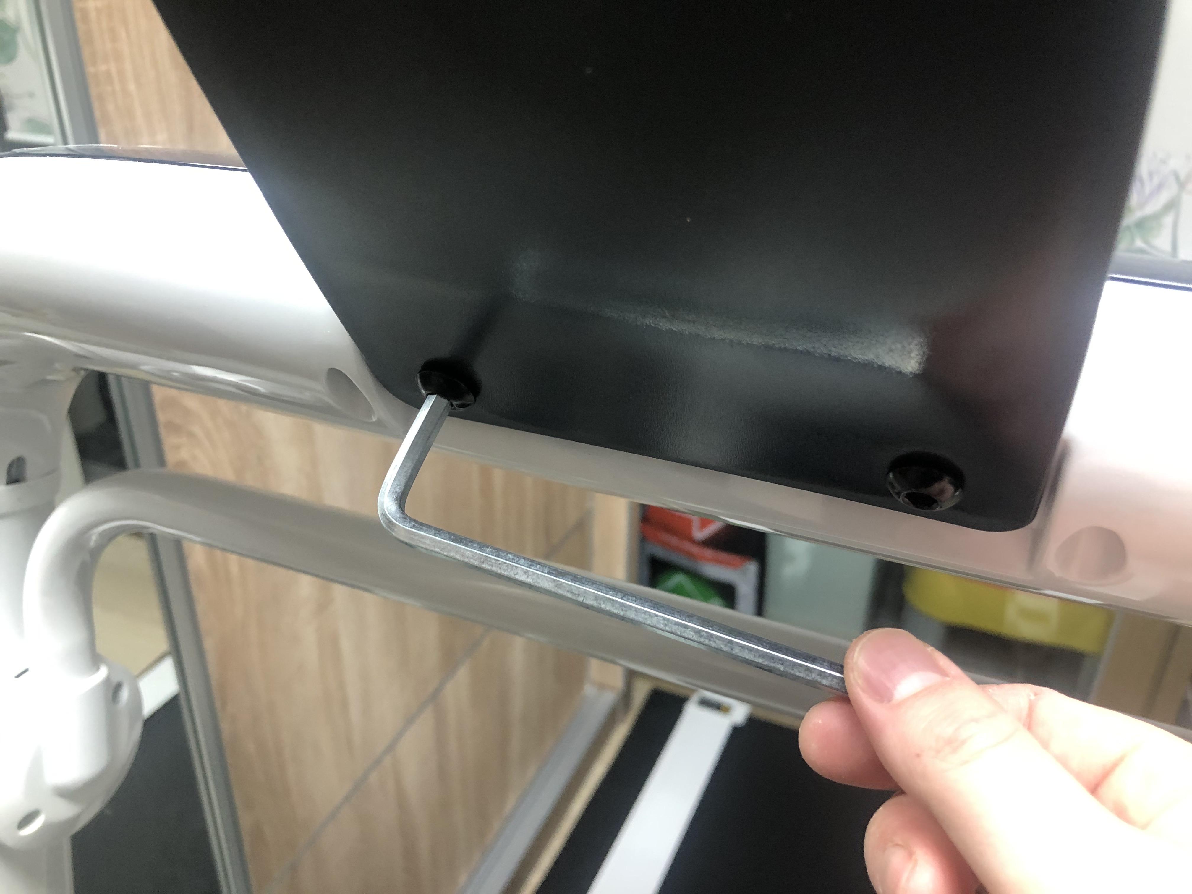 그리고 핸드폰 거치대는 상단 뒷면에 기존에 있는 볼트 2개를 육각 랜치를 이용해 풀어주고 거치대를 기둥에 대놓고 다시 조여주시면 됩니다.