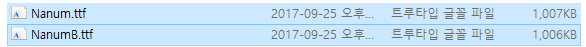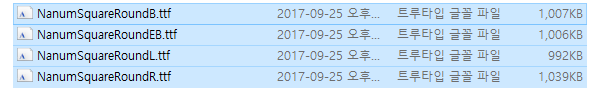 나눔스퀘어라운드 폰트를 사용하고자 할 때 제어판-글꼴에서 ttf 파일을 복사하여 가져옵니다.