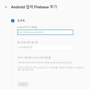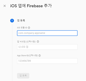 Android와 동일하게 패키지 명칭을 번들 ID에 입력해주고 앱 등록 버튼을 눌러줍니다.