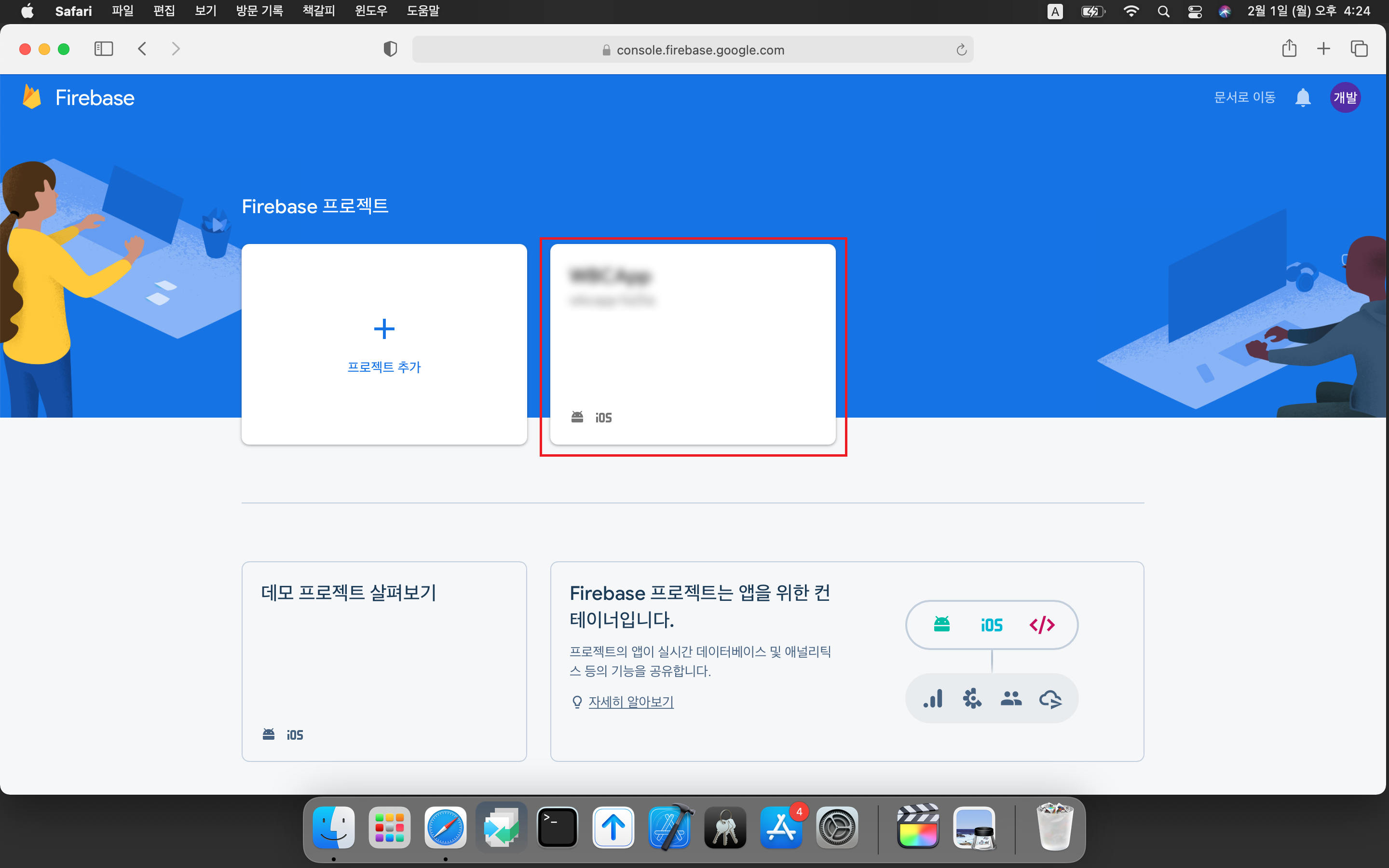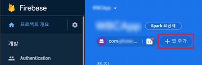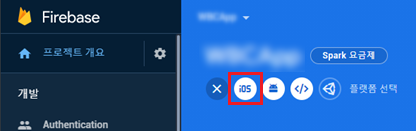이제 아이폰 iOS용 구성파일을 받아보겠습니다. 다시 Firebase 첫 화면으로 돌아와서 + 앱 추가 버튼을 눌러줍니다.