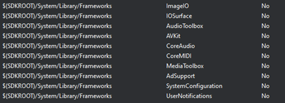 소스상에서 해야할 것은 모두 되었고, 이제 정상적으로 컴파일 하기 위해 iOS Framework를 추가해 주어야 합니다.