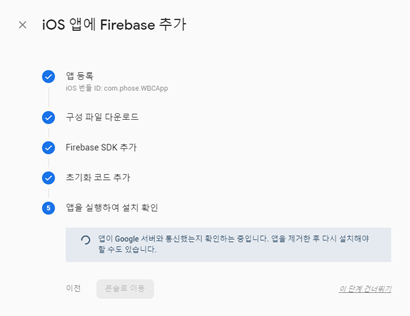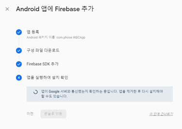 구성 파일을 다운받았기 때문에 Android와 동일하게 앱을 실행하셔 설치 확인 단계까지 다음을 눌러줍니다.