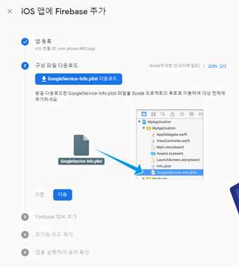구성 파일 다운로드에서 GoogleService-Info.plist 다운로드 버튼을 클릭해 plist 파일을 다운받아줍니다.