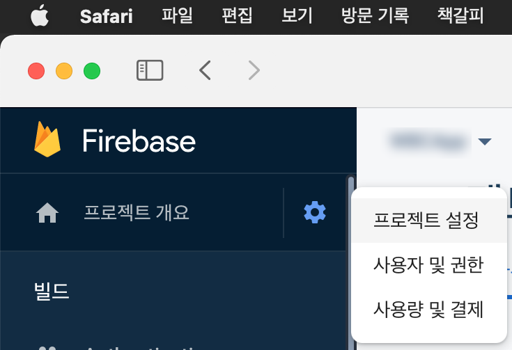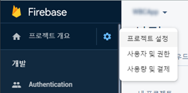 서버 키 값을 확인하기 위해 Firebase 콘솔창에서 프로젝트 설정으로 들어가 줍니다.