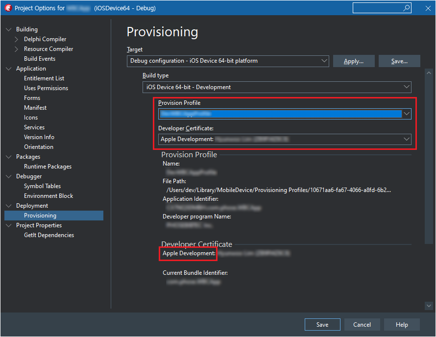 이제 PAServer를 실행하고 델파이에서 실제 프로젝트를 빌드하면 됩니다. 빌드하기 전에 Project - Options 메뉴를 선택하고 좌측의 Deployment - Provisioning을 선택하여 개발 프로파일이 잘 불러와지는지 확인하시면 좋습니다.