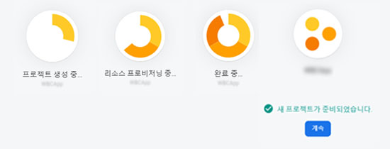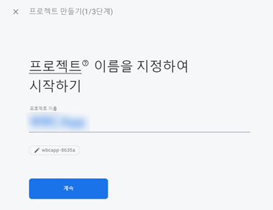 프로젝트 이름을 작성하고 계속 버튼을 누릅니다.