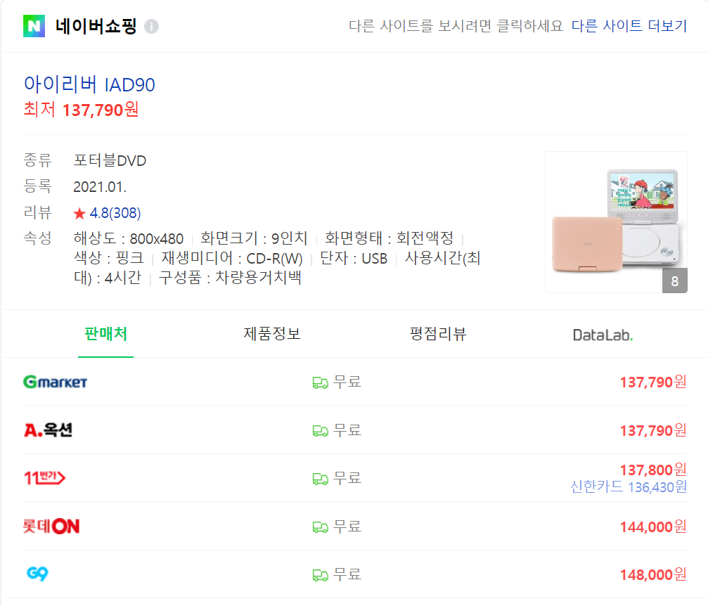 네이버쇼핑에서는 최저가 137,790원에 만나볼 수 있네요.